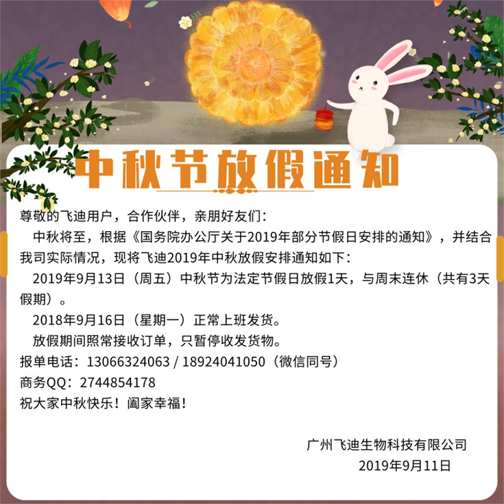 2019年廣州飛迪中秋放假通知