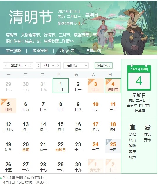 根據國務院辦公廳通知,且結合當下新冠疫情及我司實際業務情況,現將我司2021清明節的放假有關事宜通知如下: