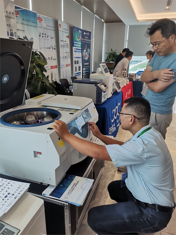 特別值得一提的是,雙子座離心機亮相本次大會,讓大家一飽眼福,近距離觀摩國內首臺突破傳統離心模式,實現高低速分離同時運行的離心機。