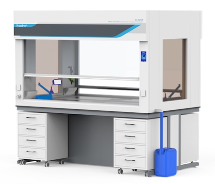 在中央實(shí)驗(yàn)臺(tái)雙面都可操作的無(wú)管凈氣型通風(fēng)柜!